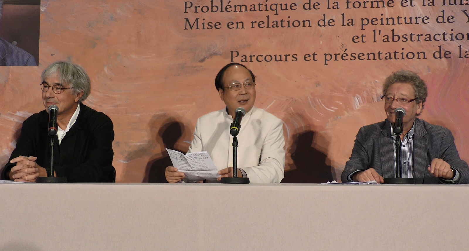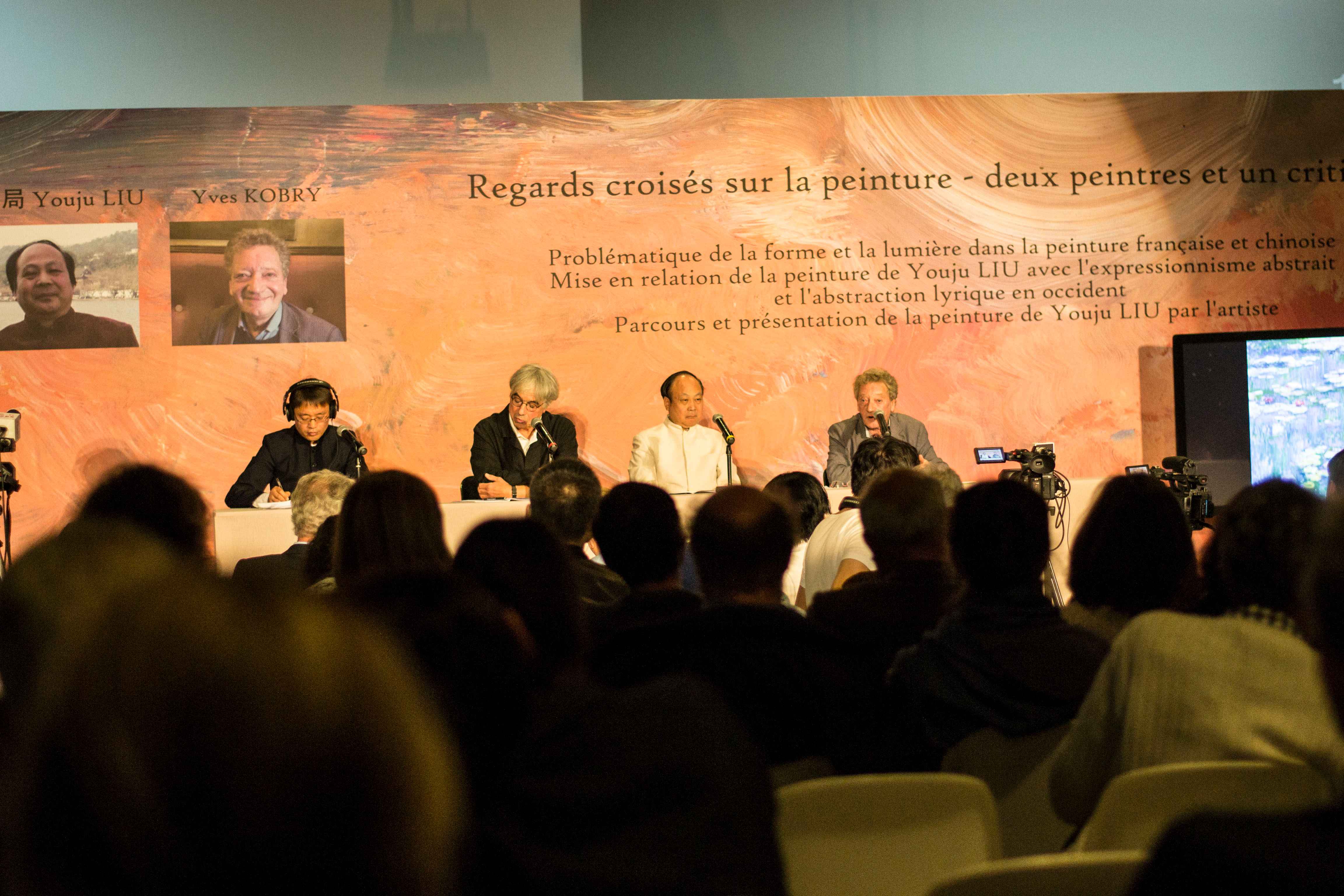 Cette conférence ou table ronde intitulée <>réunissait Rémy Aron, un peintre français renommé, spécialiste des relations artistiques franco-chinoise qui se rend régulièrement en Chine où il rencontre de nombreux artistes, Yves Kobry, un historien d’art et critique français ainsi bien sûr que Liu Youjou lui-même, maitre des cérémonies.