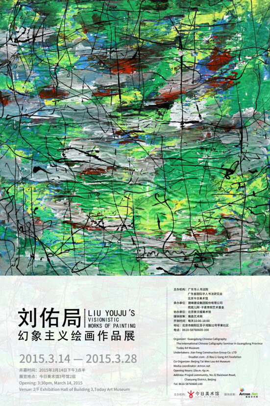 继2014年11月刘佑局幻象主义绘画作品在美国展览之后,由广东华人书法院、广东省国际华人书法研究会、北京今日美术馆主办,建峰建设集团股份有限公司、兜底儿网·子柔李刚艺术基金承办,北京泰文楼美术馆协办的“刘佑局幻象主义绘画作品展”于3月14日在北京今日美术馆隆重开幕。